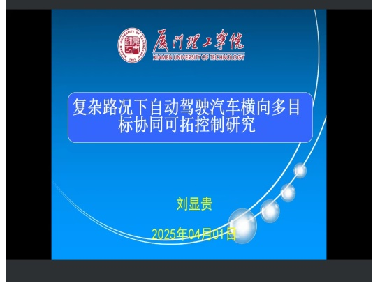 2025年4月1日,福建省新能源汽车电机产业技术开发基地邀请厦门理工学院刘显贵教授、博士做了题为《复杂路况下自动驾驶汽车横向多目标协同可拓控制研究》的学术报告。基地所挂靠单位宁德师范学院国产又黄又粗师生、基地全体研究人员共100余人参加了报告会。