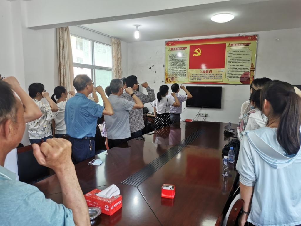 党员们认真听讲,了解到三门村可以通往福安、寿宁和周宁三个地方,故称为“三门桥”。三门桥村曾经是闽东独立师活动据点之一,据传1934年粟裕、寺淮洲、乐少华率红七军团挥师北上途经三门桥村过夜,革命烈士有叶奶太、叶成滔、叶承章、李石生等,最后,在党员活动室的党旗下,支部书记张世良带领各位党员重温入党誓词。
