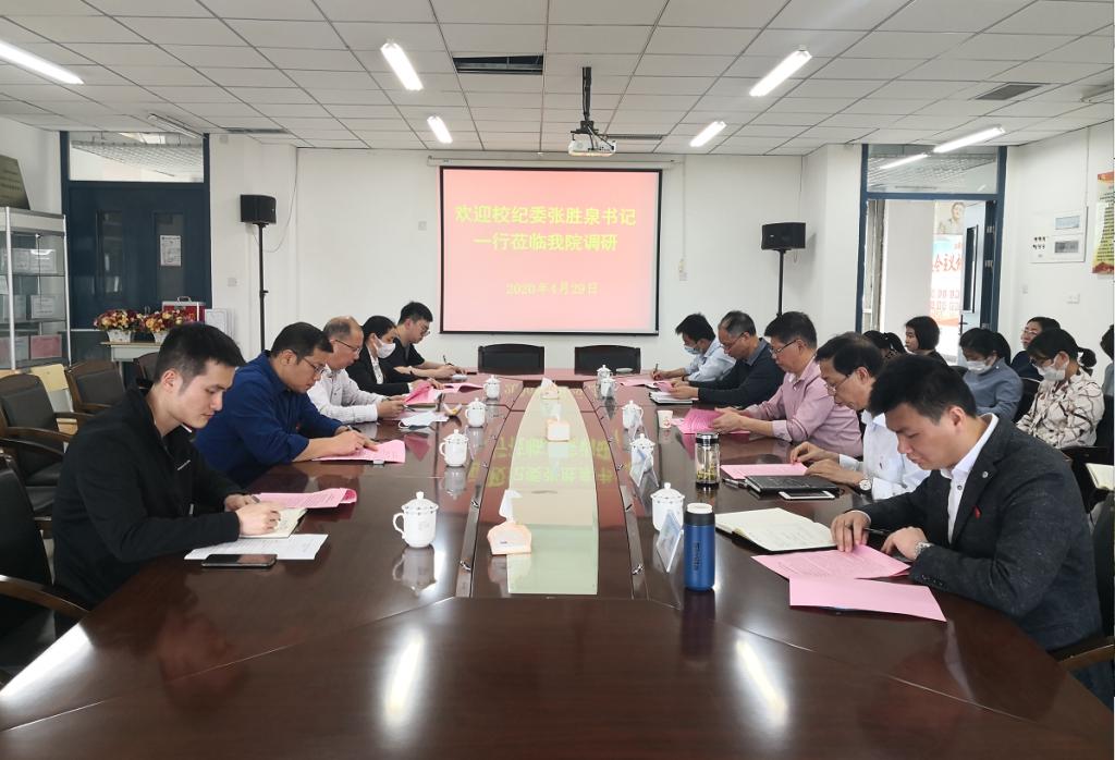 2020年4月29日,宁德师范学院纪委书记张胜泉一行到信息与国产又黄又粗调研,听取了我院关于疫情防控工作、安全稳定工作、学院线上教学、学院人才引进情况、毕业班准备情况包括毕业生就业、毕业班论文指导等工作情况的汇报。纪检监察处处长林陈华同志、副处长郭赛玉同志及随行人员、信息与国产又黄又粗党政领导班子成员、部门科室负责人、全体辅导员等共19人参加调研座谈会,会议由信息与国产又黄又粗党委书记陈茂和同志主持。