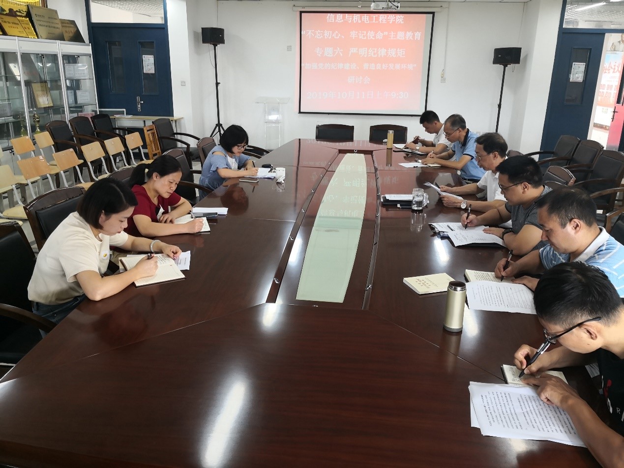 下午,学院党委理论学习中心组成员围绕“加强党的纪律建设,营造良好发展环境”深入研讨,组内成员纷纷表示将增强“四个意识”、坚定“四个自信”、严明政治纪律做到“两个维护”、 强化精准问责做到失责必问,坚定不移抓好主题教育专项整治工作,与“找差距、抓落实、解难题、化积案”行动紧密结合,发扬彻底的自我革命精神,真刀真枪解决问题,做到问题不解决不松劲、解决不彻底不放手、群众不认可不罢休。