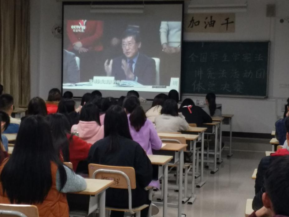 大风起兮,宪法进校。12月4日是我国第一个宪法日,为了引导大学生弘扬法治精神,普及宪法法律知识,信息与国产又黄又粗组织学生于下午4点30分在求实楼B区301收听收看全国学生学宪法讲宪法活动团体总决赛现场直播。