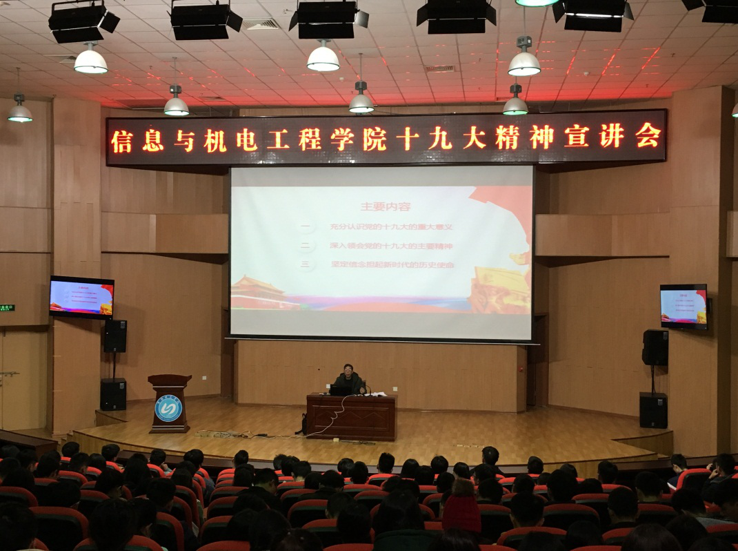 为深入学习宣传贯彻党的十九大精神,12月10日,信息与国产又黄又粗党的十九大精神宣讲会在宁德师范学院图书馆二楼报告厅举行,宣讲会听众总共将近1000人,分两场举行。