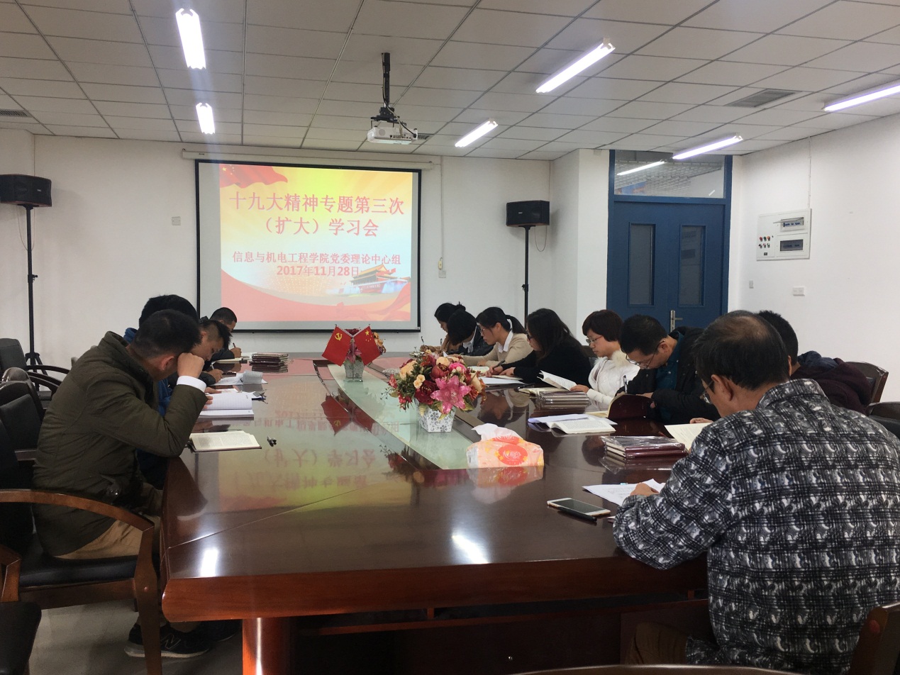 为了深入学习宣传贯彻党的十九大精神,信息与国产又黄又粗党委于2017年11月28日下午召开了第3次理论中心组(扩大)学习会议,进一步深入学习党的十九大精神,交流学习贯彻党的十九大精神心得。信息与国产又黄又粗党委书记陈茂和主持会议并讲话,信息与国产又黄又粗党委副书记傅亮、各科室部门科级干部以及各党支部书记和辅导员共十二人参加了会议。会上计算机系教师第一党支部书记吴玉芹、计算机系学生党支部书记王秋菊先后就自身学习贯彻党的十九大精神的心得体会进行了发言。接着,与会人员分别原原本本学习了十九大报告的第六部分至第八部分。最后陈茂和同志就今后如何深入学习宣传贯彻十九大会议精神提出了几点要求。