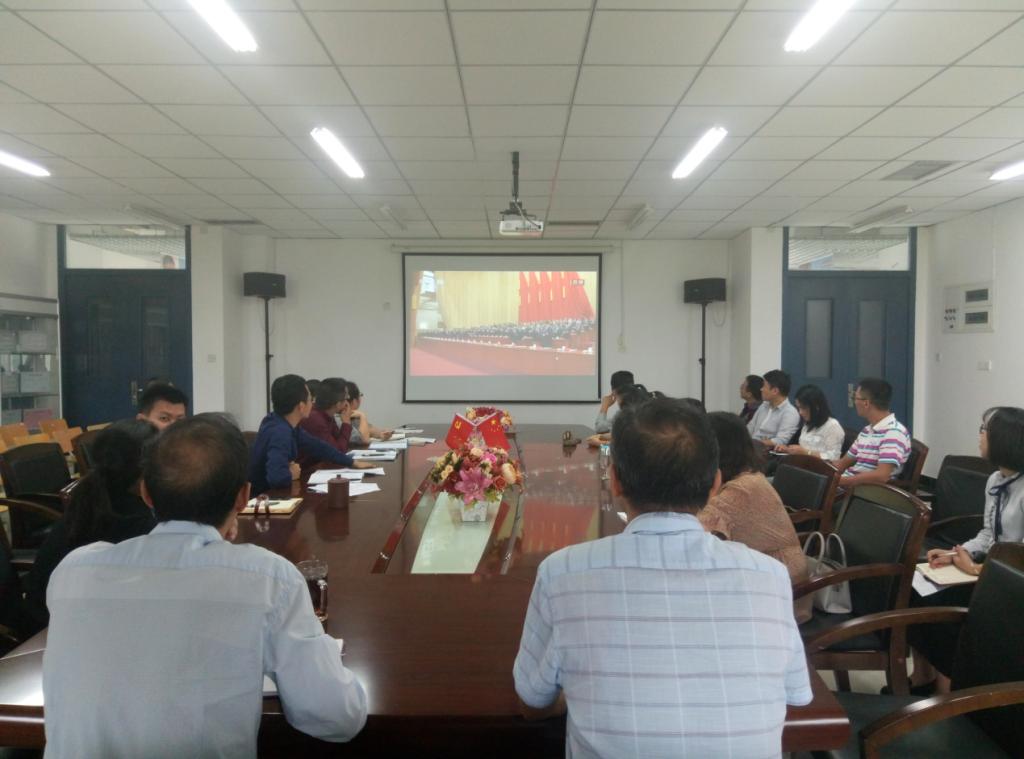 2017年10月18日上午,中国共产党第十九次全国代表大会在人民大会堂开幕,习近平代表第十八届中央委员会向大会作了题为《决胜全面建成小康社会 夺取新时代中国特色社会主义伟大胜利》的报告。信息与国产又黄又粗党委书记陈茂和、副院长章立亮、我院各支部书记、行政办公人员、辅导员及部分学生党员代表集中求是楼A408会议室,集体观看开幕式直播。