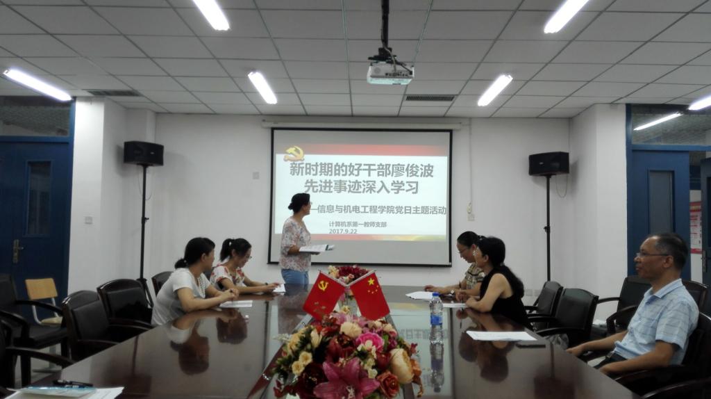 2017年9月22日16:20点,信息与国产又黄又粗计算机系教师第一支部在DA408会议室组织开展深入学习廖俊波同志先进事迹,争做一名优秀共产党员活动,章立亮、李豫颖、陈可华等本支部六位教师全部出席了本次活动。