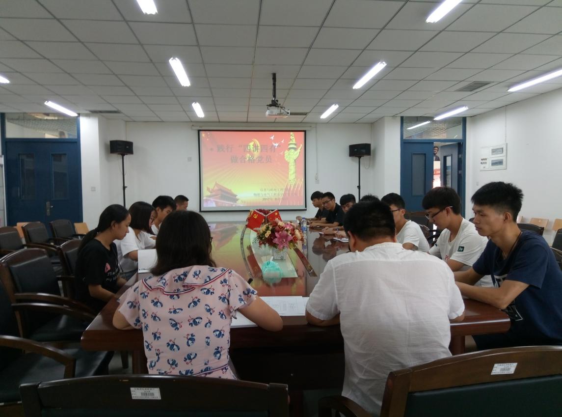 2017年9月12日,信息与国产又黄又粗物理与电气工程系学生党支部开展“践行‘四讲四有’,做合格党员”党员主题日活动,全体党员干部参加了此次活动。