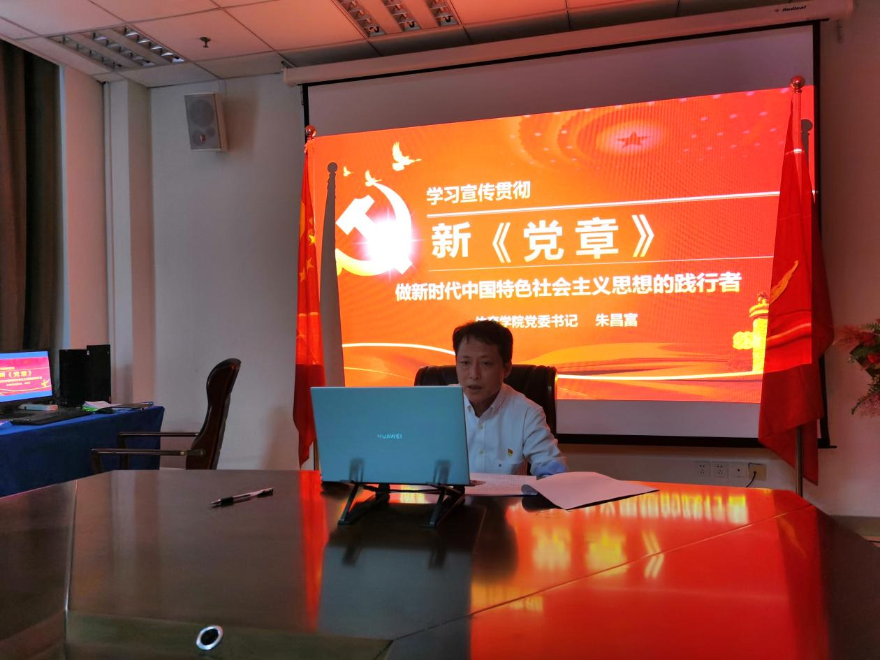 随后,体育学院党委书记朱昌富作了题为《学习宣传贯彻习近平新时代中国特色社会主义思想的践行者》的专题辅导报告,从党章的意义、发展史、十九大党章修改的主要内容以及十九大修改党章的重大意义等方面为入党积极分子们作了深刻地讲解,以深入浅出、浅显易懂的形式让入党积极分子们领悟党章的真谛,让大家更加自觉地学习党章、遵守党章、贯彻党章、维护党章。
