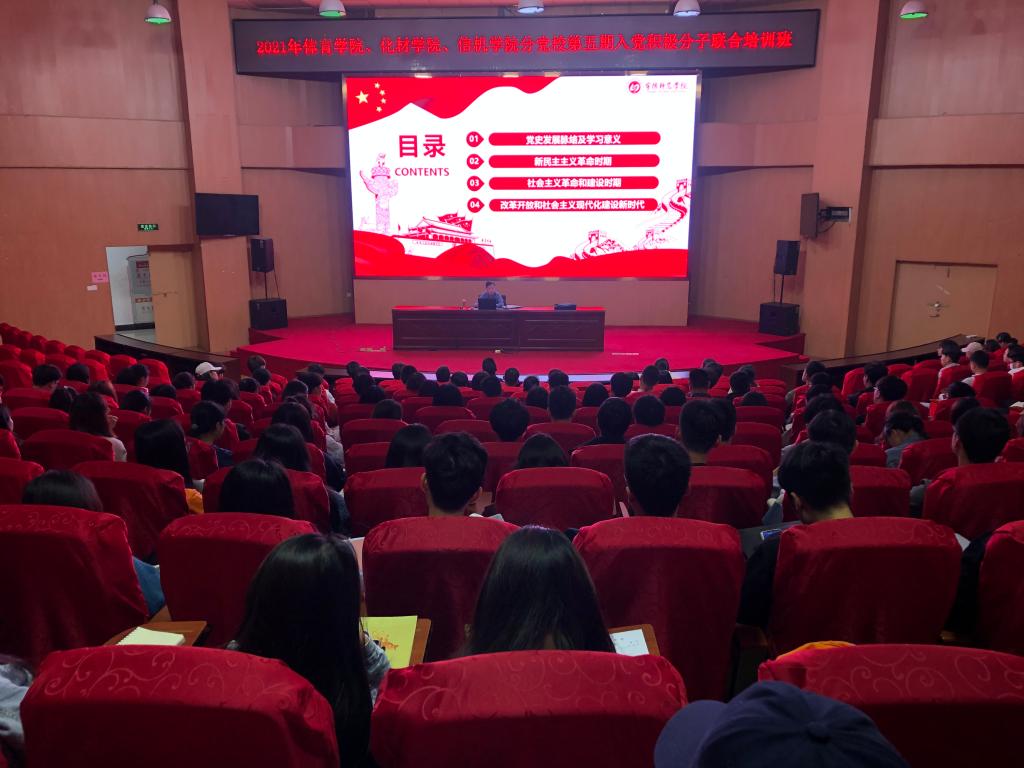 2021年4月16日,体育学院、化学与材料学院、信息与国产又黄又粗联合举办的第五期入党积极分子培训班在图书馆报告厅举行了开班仪式。