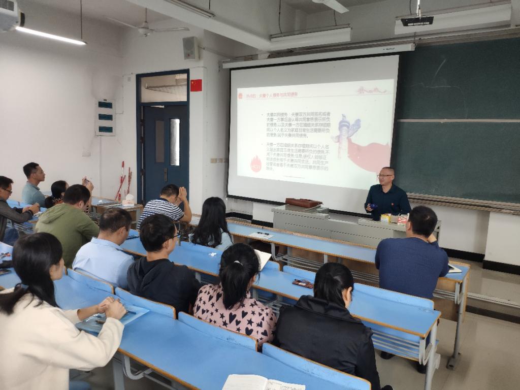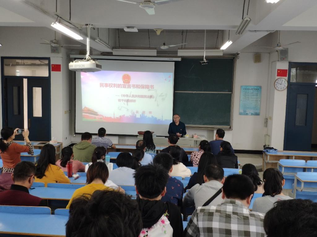 随后,我院还邀请了马克思主义学院吴家林教授为全体教师做了题为《<中华人民共和国民法典>若干问题解析》的专题辅导讲座,讲座中,吴家林教授结合学习贯彻习近平总书记在中央政治局第二十次集体学习时的重要讲话精神,围绕民法典的编纂历程、体例结构、涉及民生的十大热点问题等方面,详细阐释了民法典的重要意义、基本要义,重点围绕民法典在制度上的创新规则、创新意义等方面作了系统讲解。
