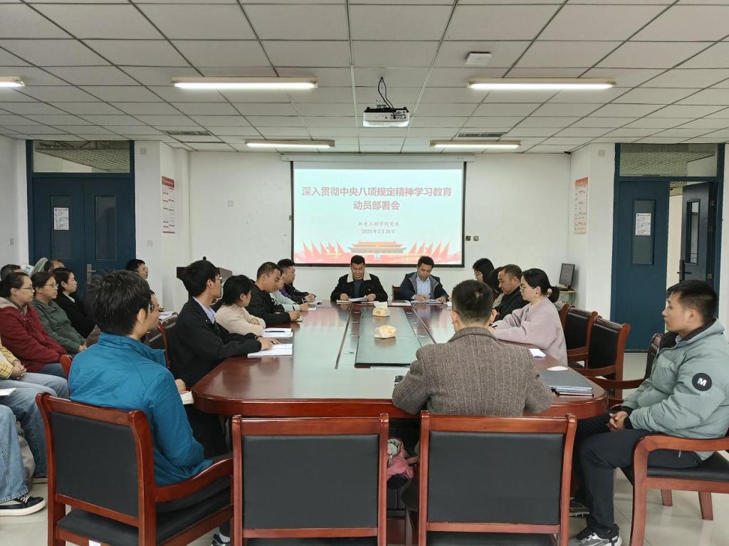 2025年3月28日下午,国产又黄又粗党委在求是楼A308会议室召开党委(扩大)会议,传达学习了《宁德师范学院关于开展深入贯彻中央八项规定精神学习教育的工作方案》要求,对深入贯彻中央八项规定精神学习教育工作进行动员部署。院党委书记傅亮主持会议并讲话,院党委班子、有关科室负责同志、各党支部书记及师生党员代表参加会议。