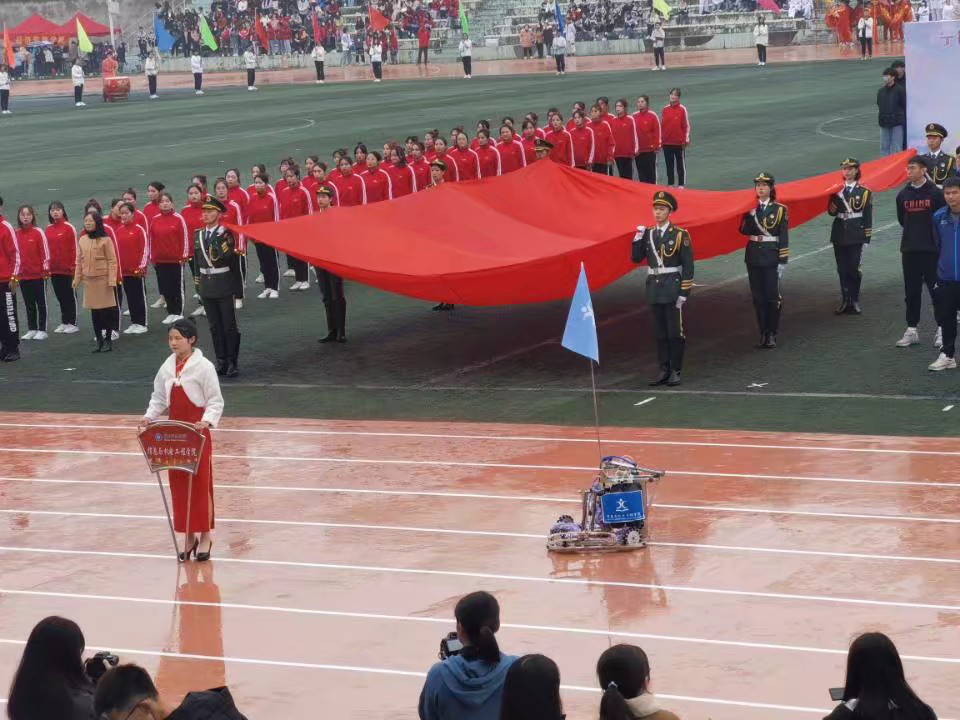 开幕仪式由国旗护卫队拉开序幕,各学院方阵紧随入场,我院方阵队伍整齐划一,并由极具我们院特色的机器人进行带队和进行表演,向全校展现了工程学院良好的精神面貌和优秀的创造精神。