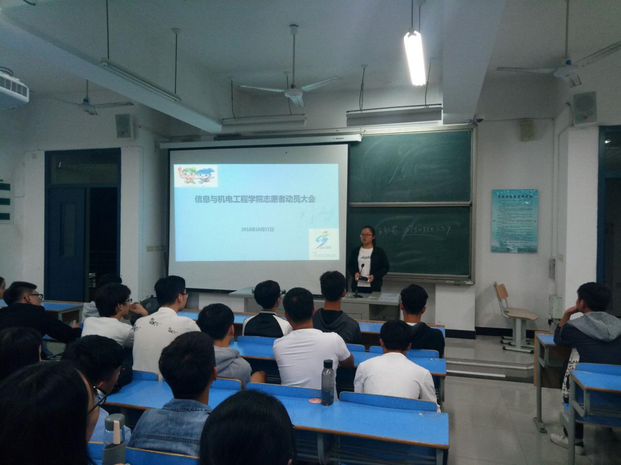 福建省第十六届运动会开幕之际,为做好志愿服务工作,2018年10月11日信息与国产又黄又粗召开竞赛志愿者动员大会,志愿者带队老师、院党委秘书卓敏老师,院团委负责人王秋菊老师及134名赛会志愿者出席了会议。