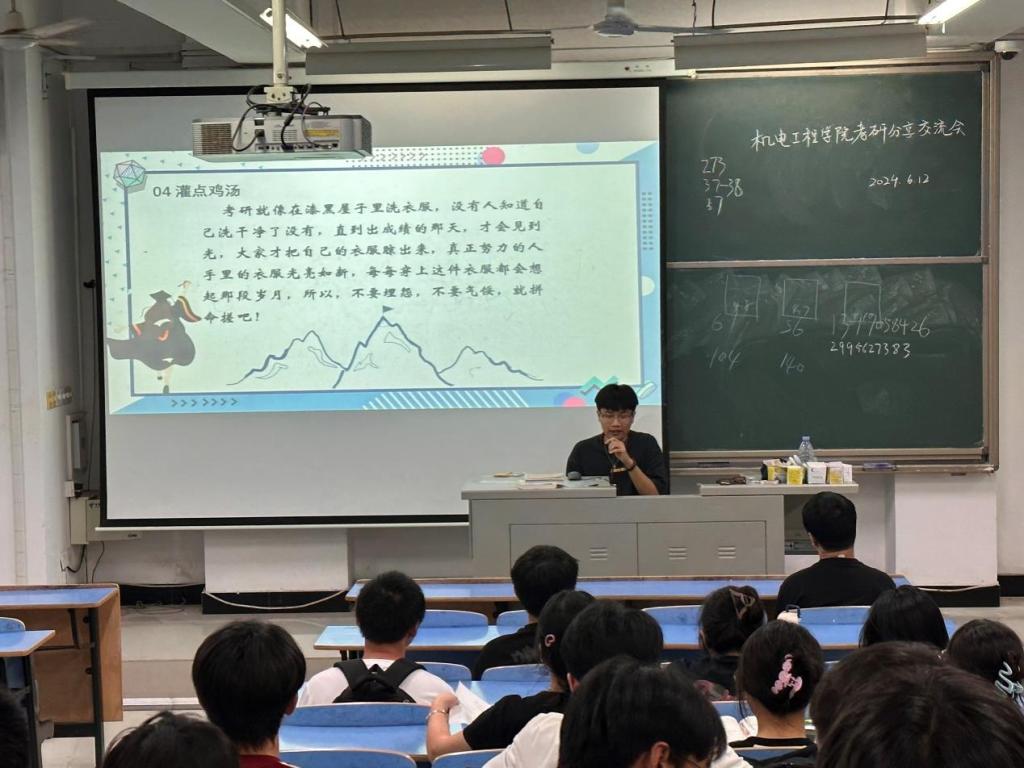 2024年,我院共有11名毕业生考取国内高校硕士研究生。榜样的力量,是最坚强的信念;成功的经验,是最温暖的启迪。本次考研交流会进一步提高了我院学子学习、考研的规划性和合理性,增强了同学们考研的信心和决心,为我院更多学子考研立志、逐梦青春提供了充分的动力和方向。