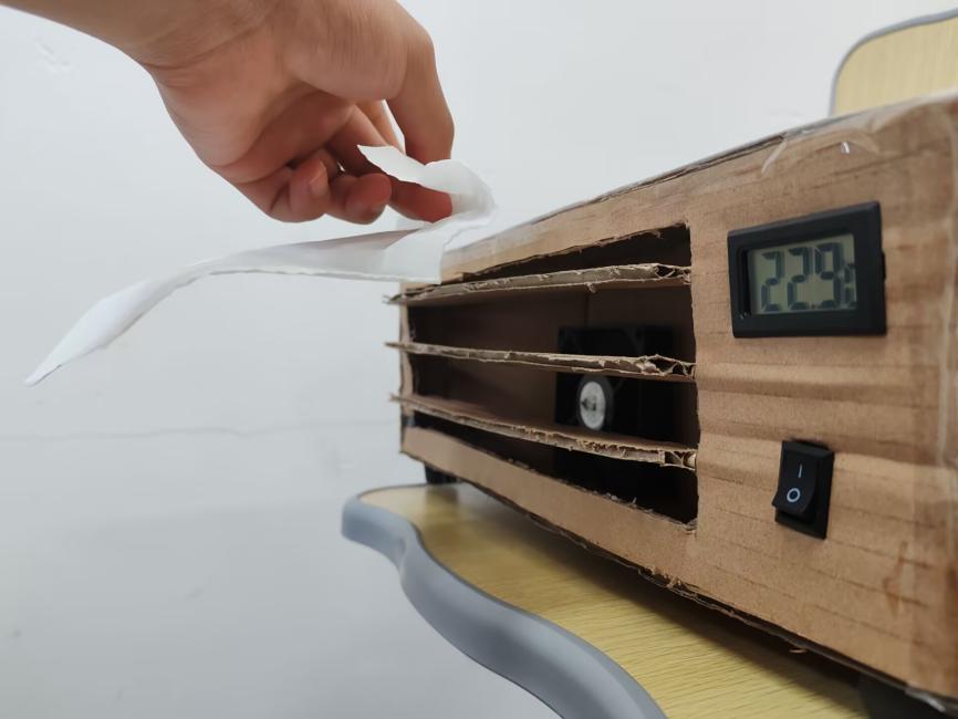 一等奖由数理学院杨雅琦同学凭借作品《制冷小冰箱》斩获,作品以泡沫盒为主体,巧妙融合废旧半导体致冷片、散热风扇等材料,通过精巧设计实现稳定制冷功能,将废旧材料转化为实用家电,创意与实用性兼具;二等奖归属数理学院陈珊珊同学的作品《环保手工空调》,团队选用废旧纸箱作外壳,搭配废弃塑料部件、旧空调扇叶及自制水循环冷凝装置,以低成本环保方案打造出简易制冷设备;语言文化学院左郦竹同学的作品《机械之心,循环动力》、旅游管理学院林烨静同学的作品《机械蝴蝶》获得三等奖。前者利用废旧塑料瓶、橡皮筋等材料自制小风扇,通过动力传动结构设计模拟循环动力原理;后者以废旧金属丝、塑料薄片手工打造造型逼真的机械蝴蝶,结构设计与艺术呈现亮点突出。