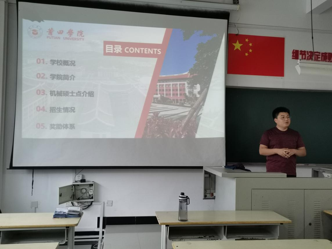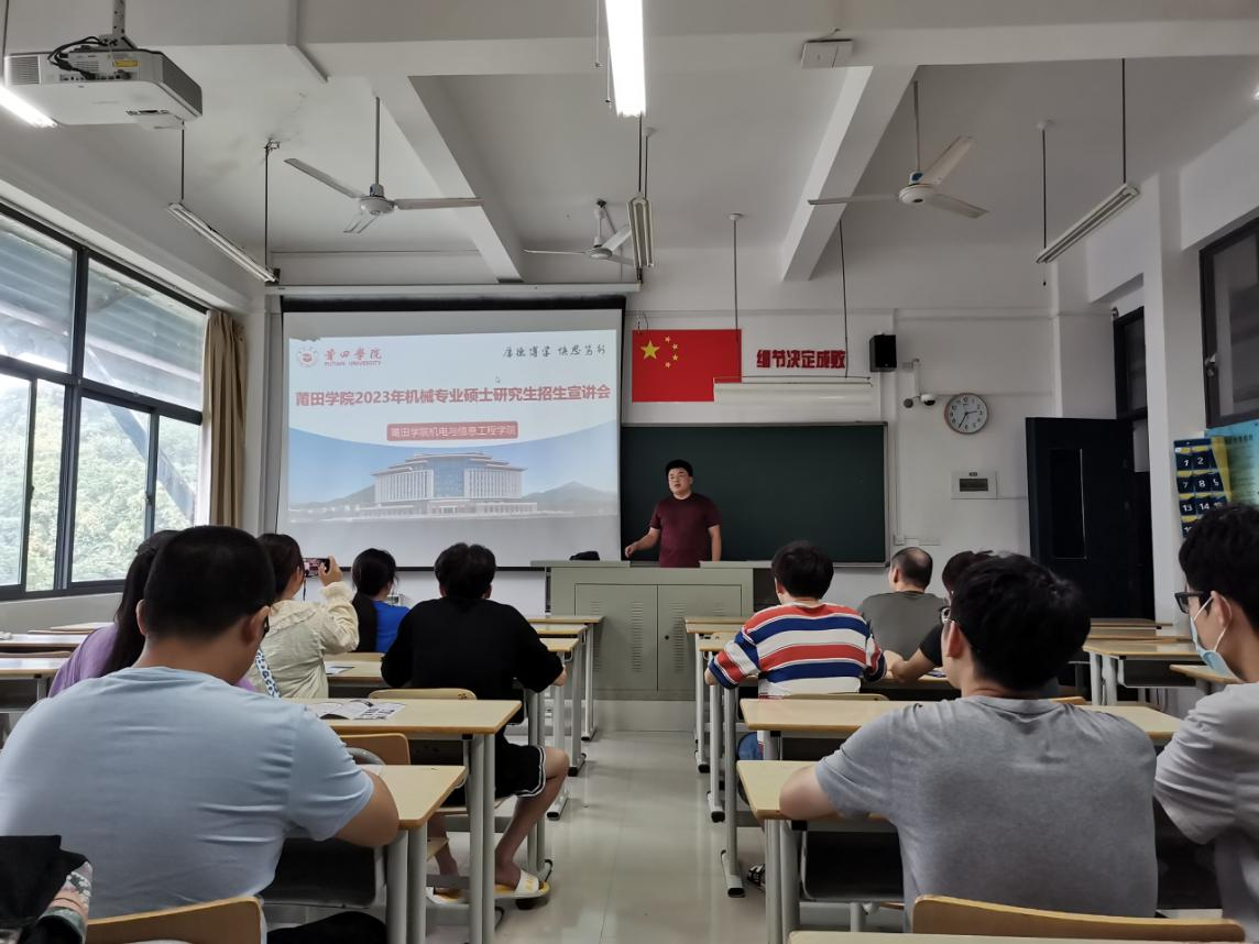 宣讲会上,曹老师从莆田学院历史沿革、机电与信息工程学院情况、机械硕士点师资情况、招生信息、奖助体系等五个部分介绍了莆田学院的机械专业招生情况及政策。