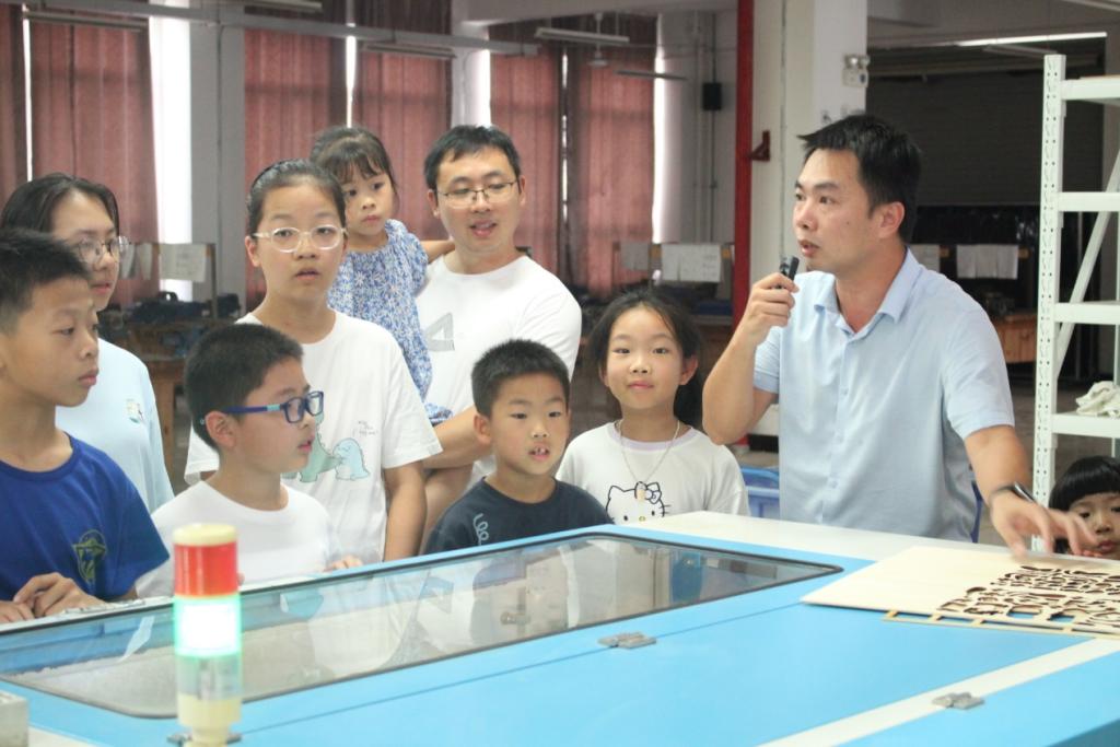 同学和家长们参观了机械创新设计实验室各种先进制造设备,聆听专业教师对设备的讲解,亲自动手操作并加工出自己喜欢的作品。