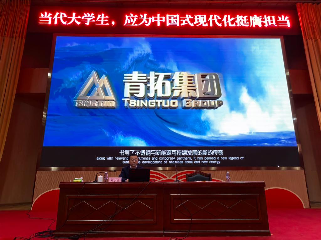 刘永清书记在报告中以青拓集团全国劳动模范、首席工程师周小明的生动事迹,鼓励同学们要树立了正确的世界观、人生观和价值观,精研专业,扎根基层,一心做好一件事。他表示,工作中的挑战与困难总是不可避免的,面对这些难题,应展现出不屈不挠的精神,积极寻求解决方案,并以智慧和勇气克服困难,勉励同学们为中国式现代化贡献青春力量。