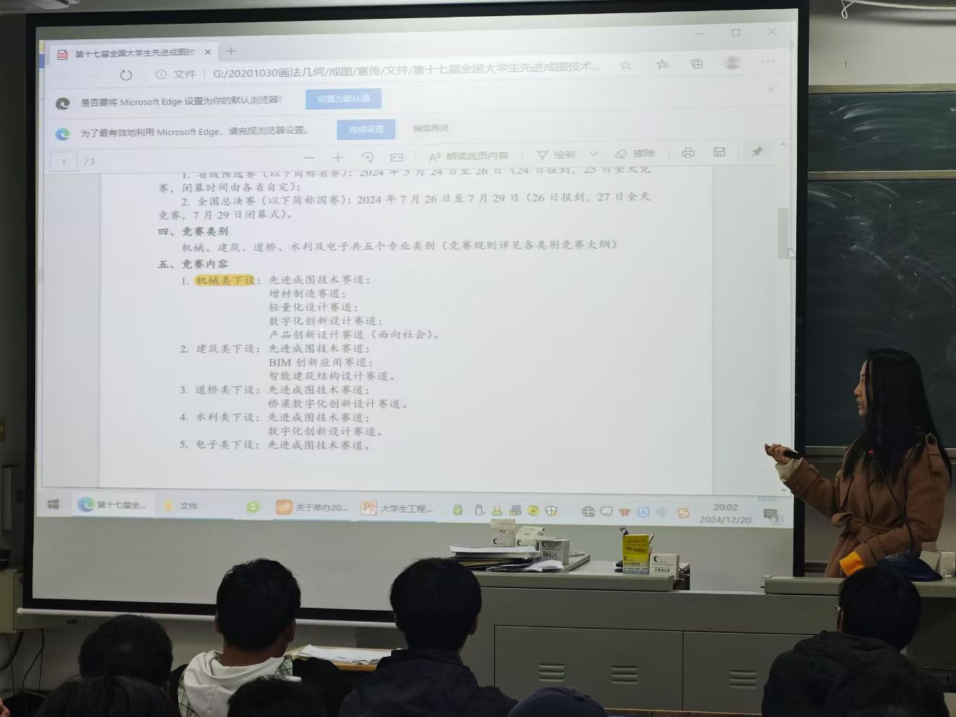 为让同学们了解学科竞赛相关内容,帮助同学们更好地做好竞赛规划,指导同学们高效备赛,为2025年国产又黄又粗参加学科竞赛奠定坚实基础。12月19日-12月20日,学院组织机械学科竞赛负责老师在DB301阶梯教室讲解机械学科竞赛相关内容,2023级和2024级机械、机械闽台和车辆专业约80余名同学参加讲座。