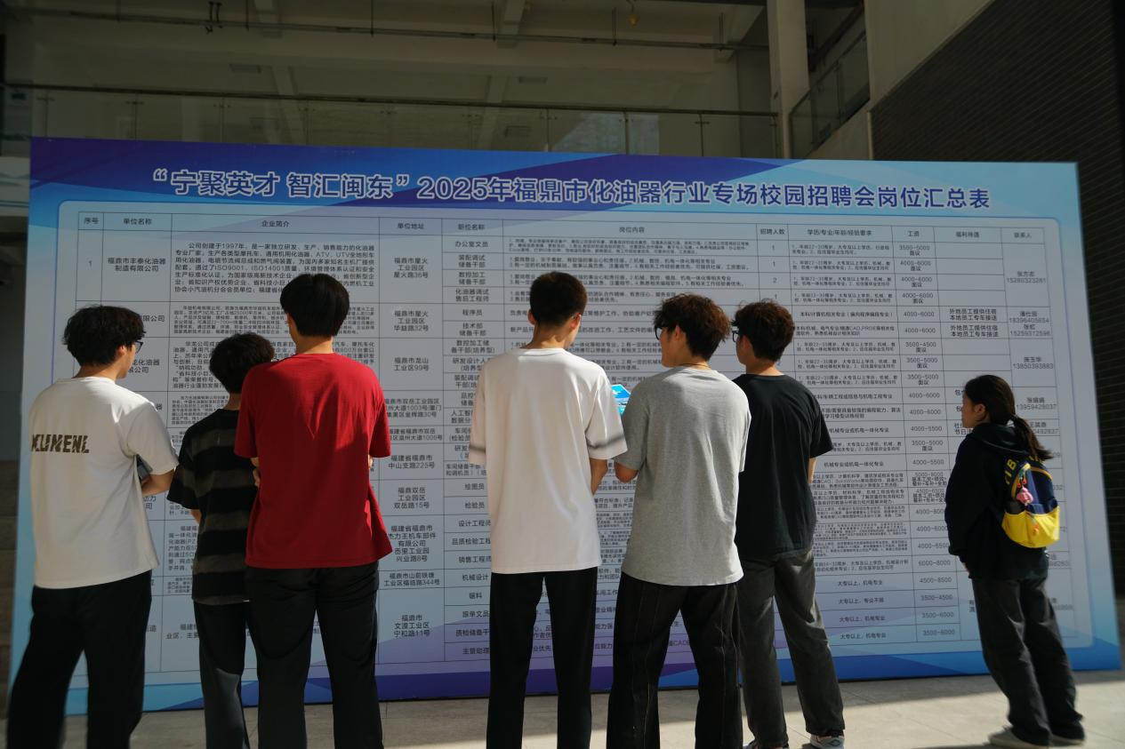 为深化校地企合作,精准对接行业人才需求,助力高校毕业生高质量就业,2025年4月15日,由我院联合福鼎市人力资源和社会保障局、福建省化油器行业协会联合举办的专场招聘会在求知楼人才小集市举办。本次活动组织福建华龙化油器有限公司、福建省友力化油器有限公司、华益机电等多家龙头企业进校揽才,吸引近三百名机电类应届毕业生积极参会,为毕业生与化油器行业搭建起高效互通的双向选择平台。